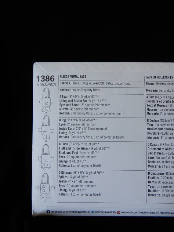 Fleece Animal Bags Simplicity 1386 Uncut Factory Folded Etsy